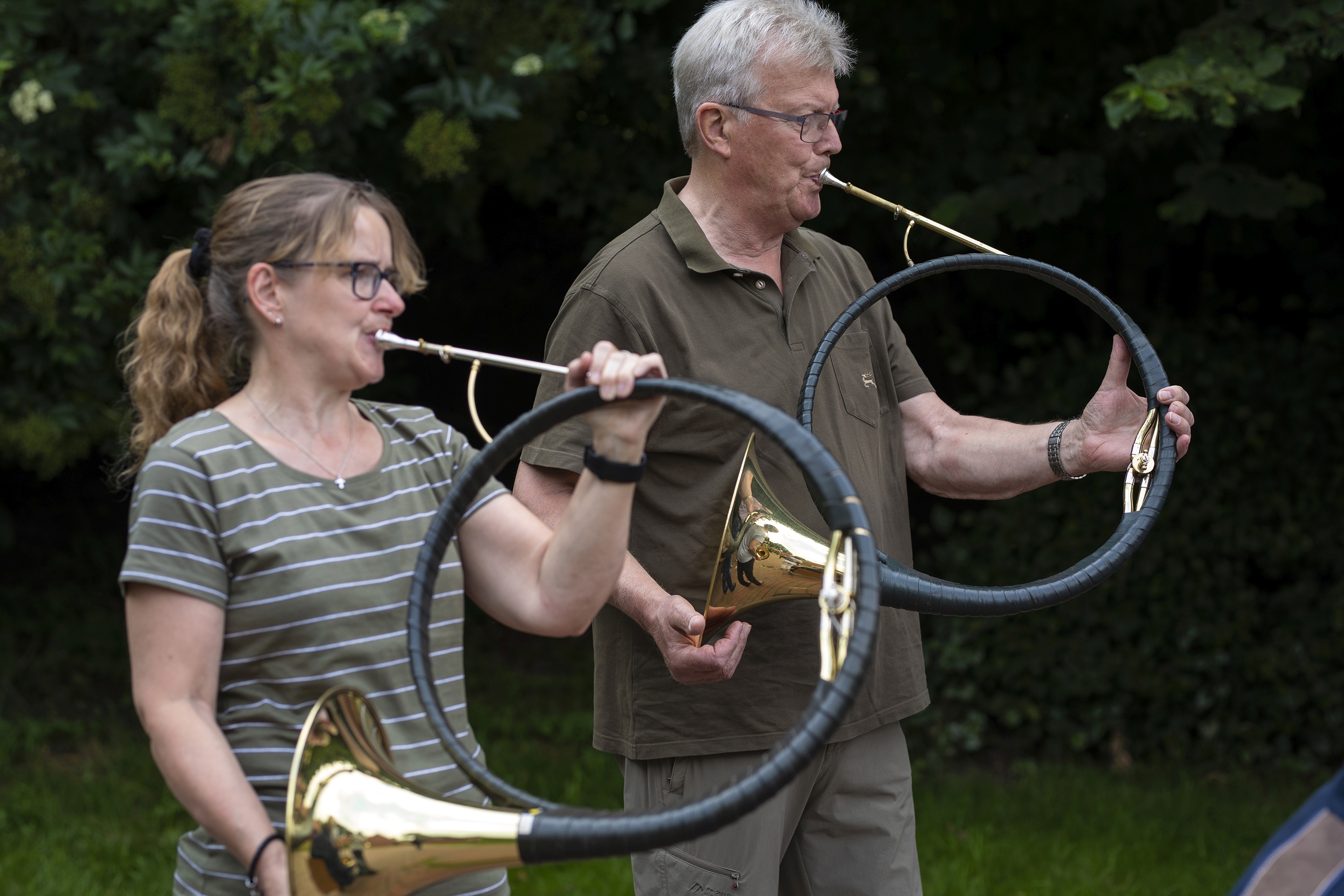Bei sehr warmen, schwülen Wetter, hatten sich ca. 60 Jagdhornbläser in Ostrhauderfehn eingefunden und das gemeinsame Blasen geübt. Trotz der Witterung hatte sich nach einer Stunde üben eine bläserische Gemeinschaft gebildet, dessen Ergebnis sich sehen lassen konnte.