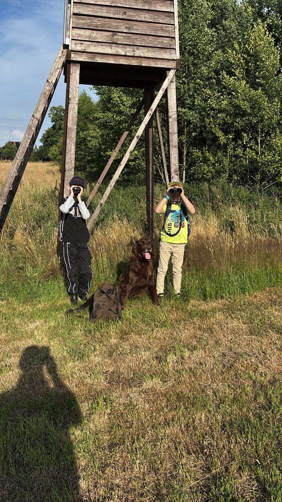 25 Kinder und 21 Jäger trafen sich am 4.7.2025 bei bestem Wetter, um gemeinsam Wildtiere vom Hochsitz aus zu beobachten.